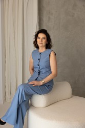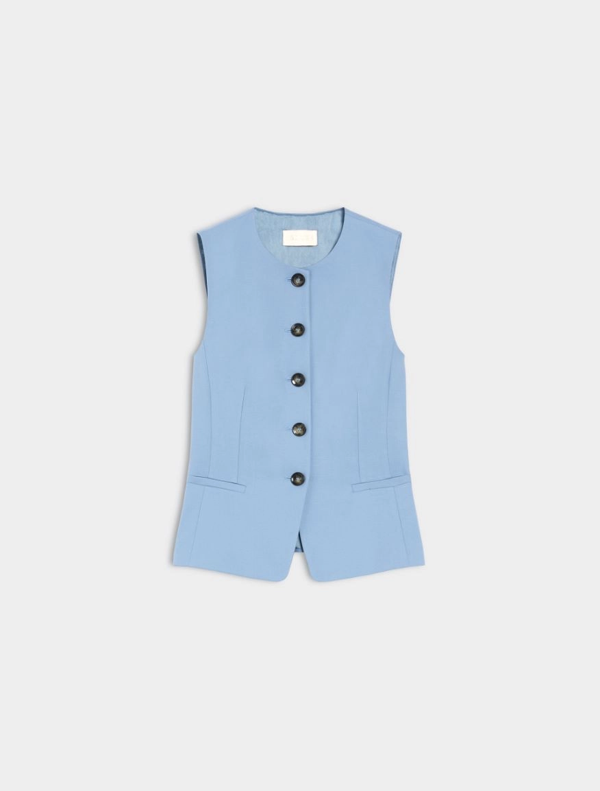 Kamizelka zapinana na guziki z okrągłym dekoltem.